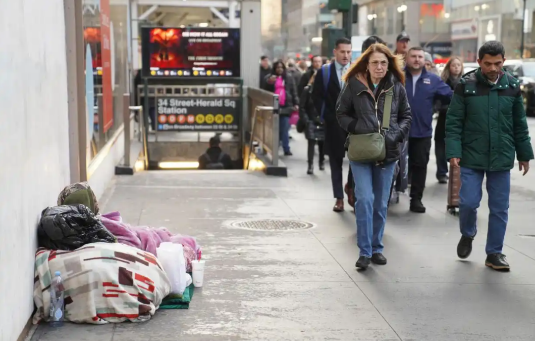2025年12月18日,一名无家可归者在美国纽约曼哈顿露宿街头。新华社发